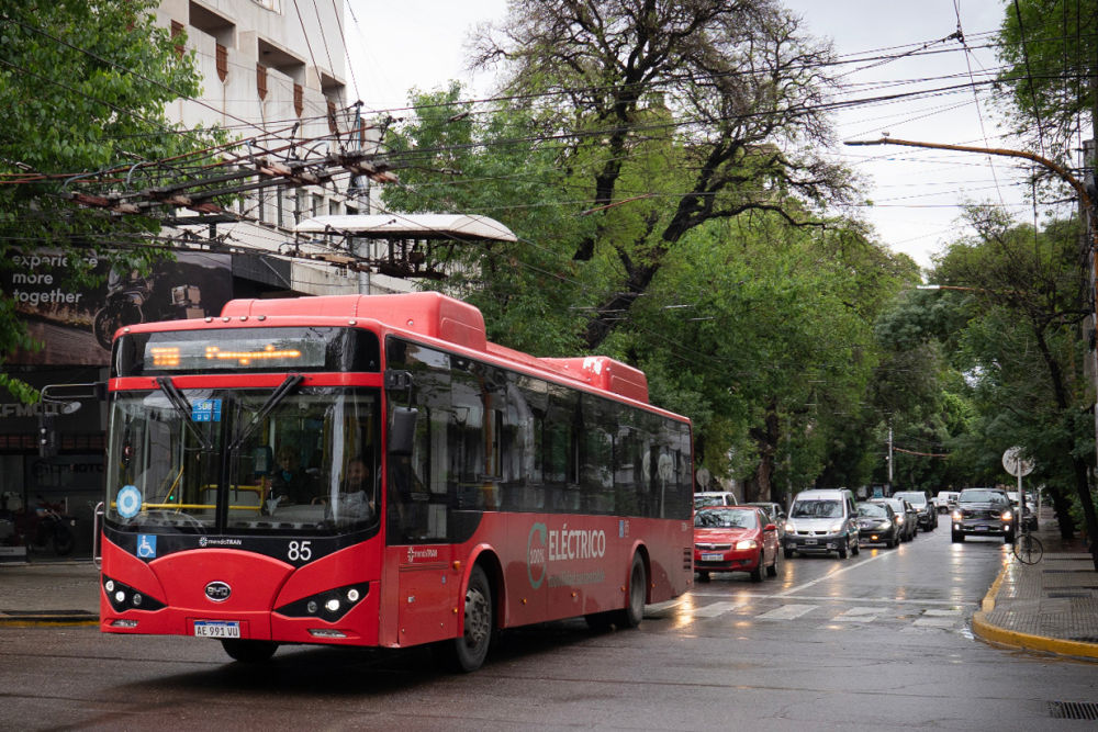 拜訪完酒莊,記者來到門多薩市區(qū)。這里,一些紅色公交車穿梭于林蔭道,車身上“百分之百電動(dòng)”的標(biāo)語非常醒目。這是門多薩于2019年從比亞迪和中通客車購入的電動(dòng)巴士。由此當(dāng)?shù)氐谝恢щ妱?dòng)公交車隊(duì)正式投入運(yùn)營(yíng)。
