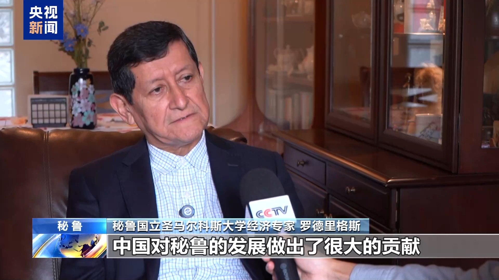 秘魯國立圣馬爾科斯大學(xué)經(jīng)濟(jì)專家 羅德里格斯:中國對(duì)秘魯?shù)陌l(fā)展做出了很大的貢獻(xiàn)。首先中國從我們這里購買產(chǎn)品,其次中國向我們提供了很多產(chǎn)品,有價(jià)格實(shí)惠的手機(jī)、汽車,提高了許多人的生活水平。