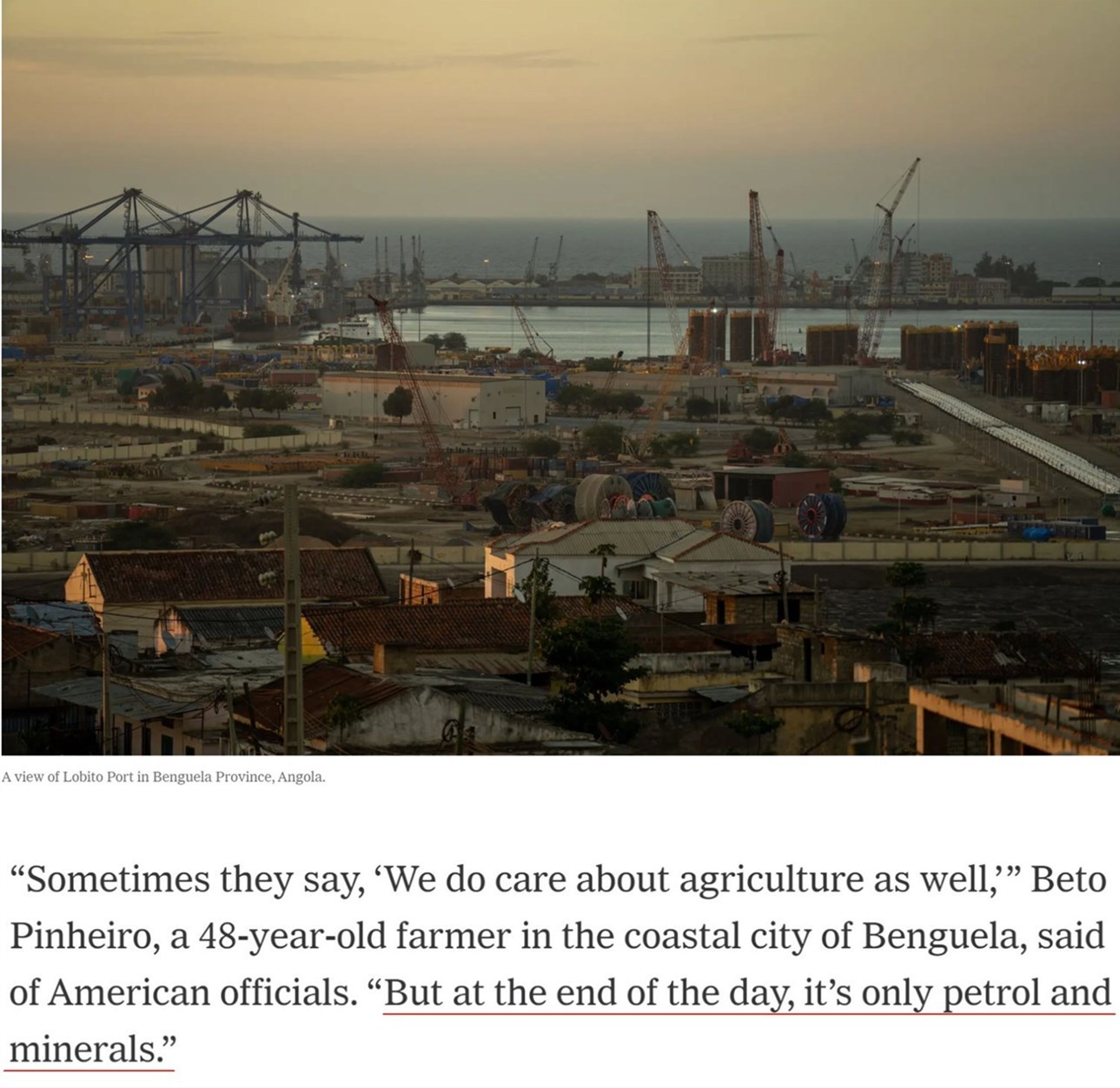 家住安哥拉沿海城市本格拉的48歲農(nóng)民貝托·皮涅羅說:“有時(shí)他們(美國官員)會說,‘我們也關(guān)心(安哥拉的)農(nóng)業(yè)’……但歸根結(jié)底,(美國關(guān)心的)只有石油和礦產(chǎn)。”