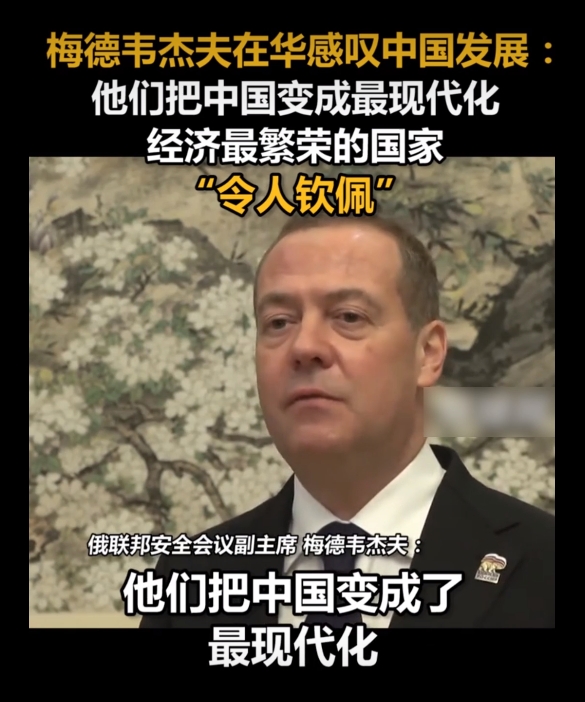 梅德韋杰夫在華感嘆中國發(fā)展:他們把中國變成最現(xiàn)代化、經(jīng)濟最繁榮的國家
