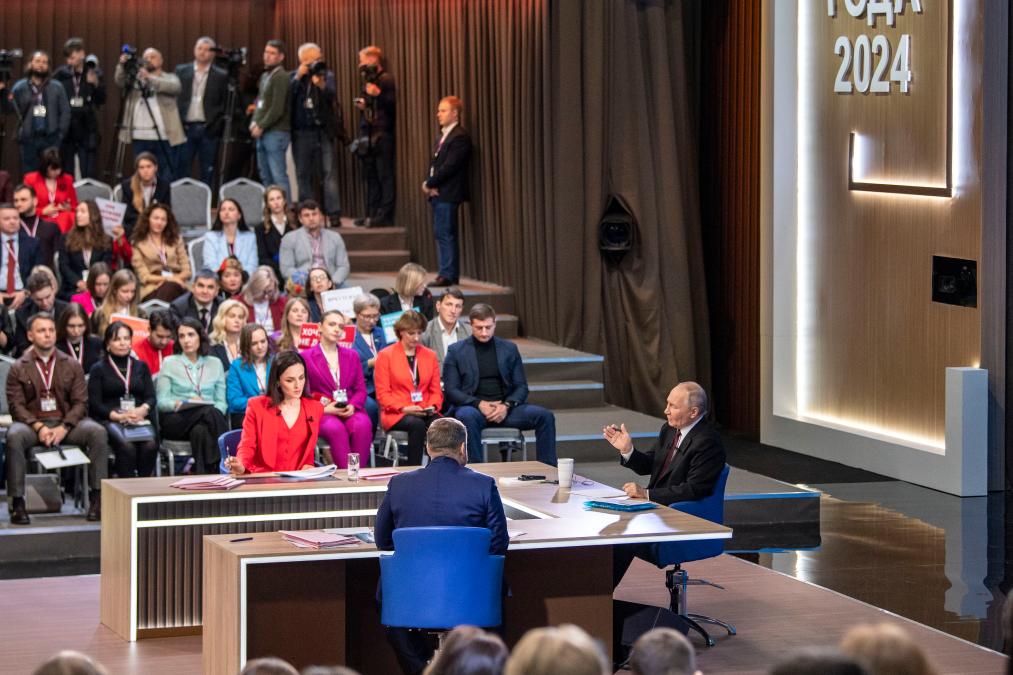 12月19日,在俄羅斯首都莫斯科,俄羅斯總統(tǒng)普京在“年度盤(pán)點(diǎn)”活動(dòng)上講話。新華社記者白雪騏攝