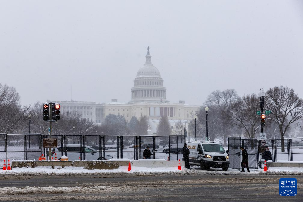 6日當天,美國國會大廈周圍被高大的隔離欄環(huán)繞,安保措施顯著加強。
