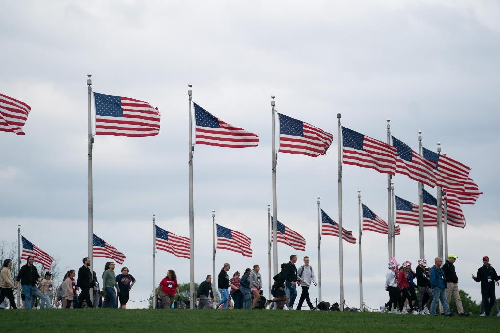 2024年4月25日,游客在美國(guó)首都華盛頓的國(guó)家廣場(chǎng)游覽。新華社記者劉杰攝