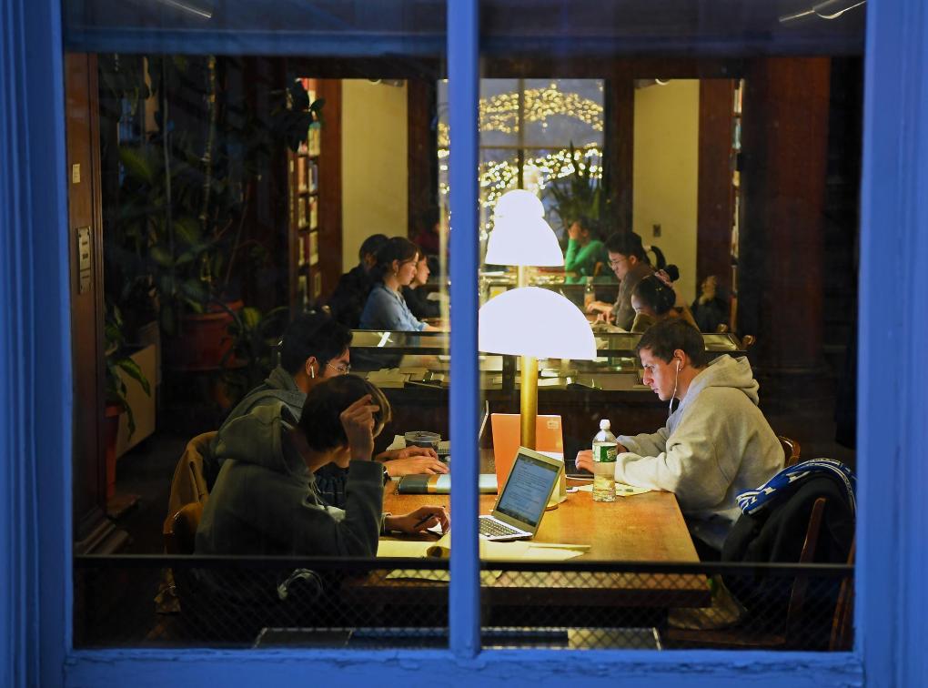 2019年12月7日,在美國(guó)紐約,哥倫比亞大學(xué)學(xué)生在圖書(shū)館自習(xí)。新華社記者李睿攝
