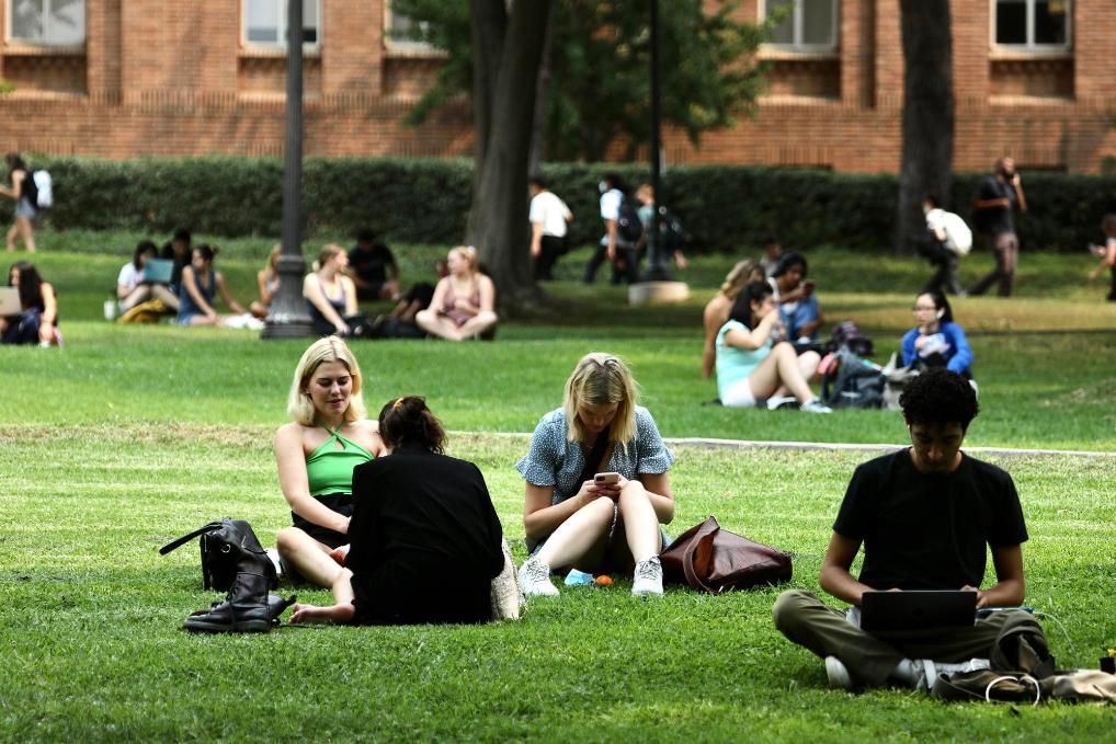 這是2021年9月23日在美國(guó)加州大學(xué)洛杉磯分校校園內(nèi)拍攝的學(xué)生。新華社發(fā)