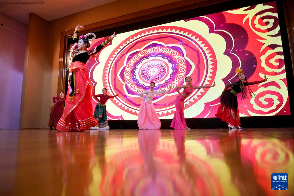 1月24日,在俄羅斯首都莫斯科,演員在中國駐俄羅斯大使館舉辦的2025年俄羅斯友人新春招待會(huì)上表演舞蹈。新華社發(fā)(亞歷山大攝)