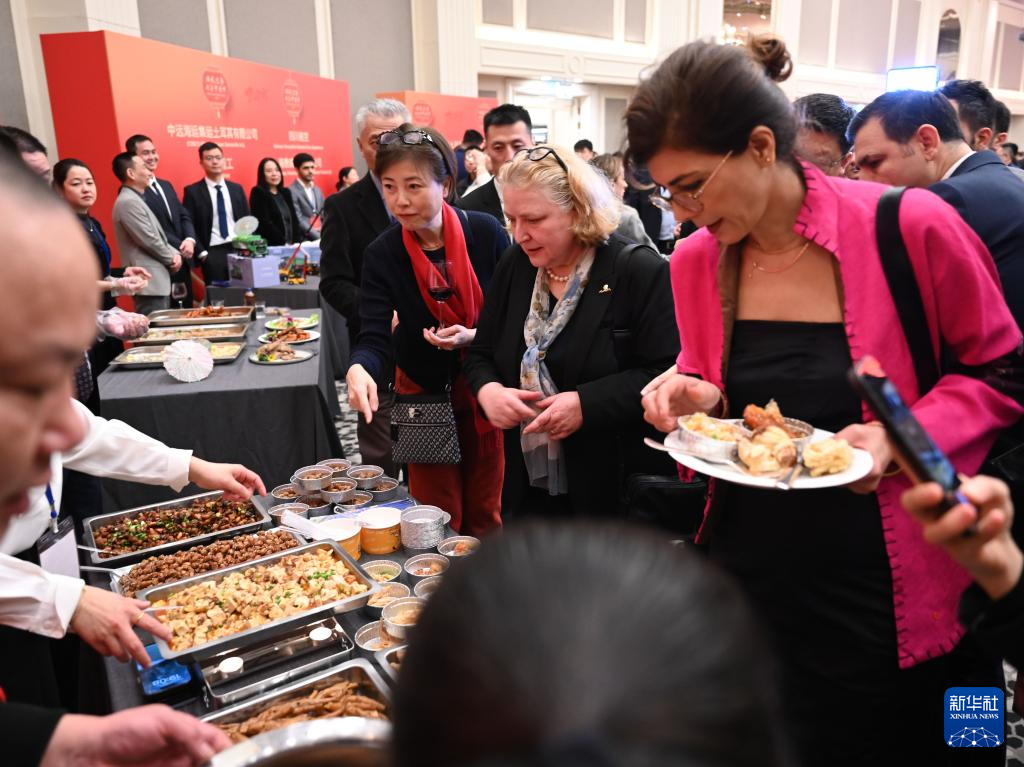 1月19日,在土耳其伊斯坦布爾,來賓在中國駐伊斯坦布爾總領(lǐng)館舉辦的新春招待會(huì)上品嘗美食。新華社記者 劉磊 攝