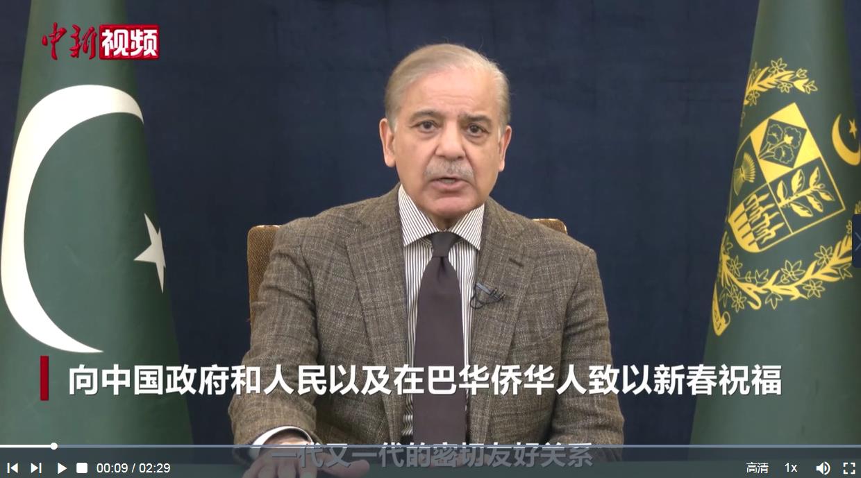 當(dāng)?shù)貢r(shí)間1月28日,巴基斯坦總理夏巴茲發(fā)表視頻致辭,向中國政府和人民以及在巴華僑華人致以新春祝福,表示巴方將繼續(xù)與中方攜手為全球和平、繁榮與和諧作出貢獻(xiàn)。(記者 薄雯雯制作 徐妙巧 視頻來源 巴基斯坦駐華大使館)