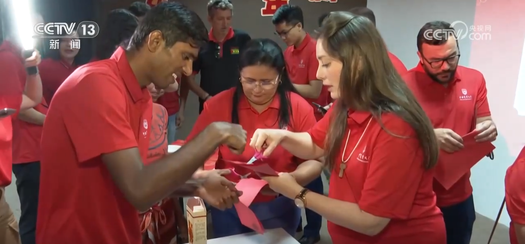 當?shù)貢r間1月28日一大早,也就是北京時間的除夕夜,巴西東北部小鎮(zhèn)阿波迪打破了往日的平靜。很多當?shù)孛癖娭?,他們的中國朋友即將舉行春節(jié)慶?;顒?,因而早早地來到了活動現(xiàn)場。在現(xiàn)場,中國農業(yè)技術人員不僅貼上了春聯(lián)、掛上了福字,還邀請當?shù)孛癖娨黄鹂创和?、包餃子、剪窗花、寫春?lián),這也是很多當?shù)孛癖姷谝淮螀⒓哟汗?jié)慶祝活動。