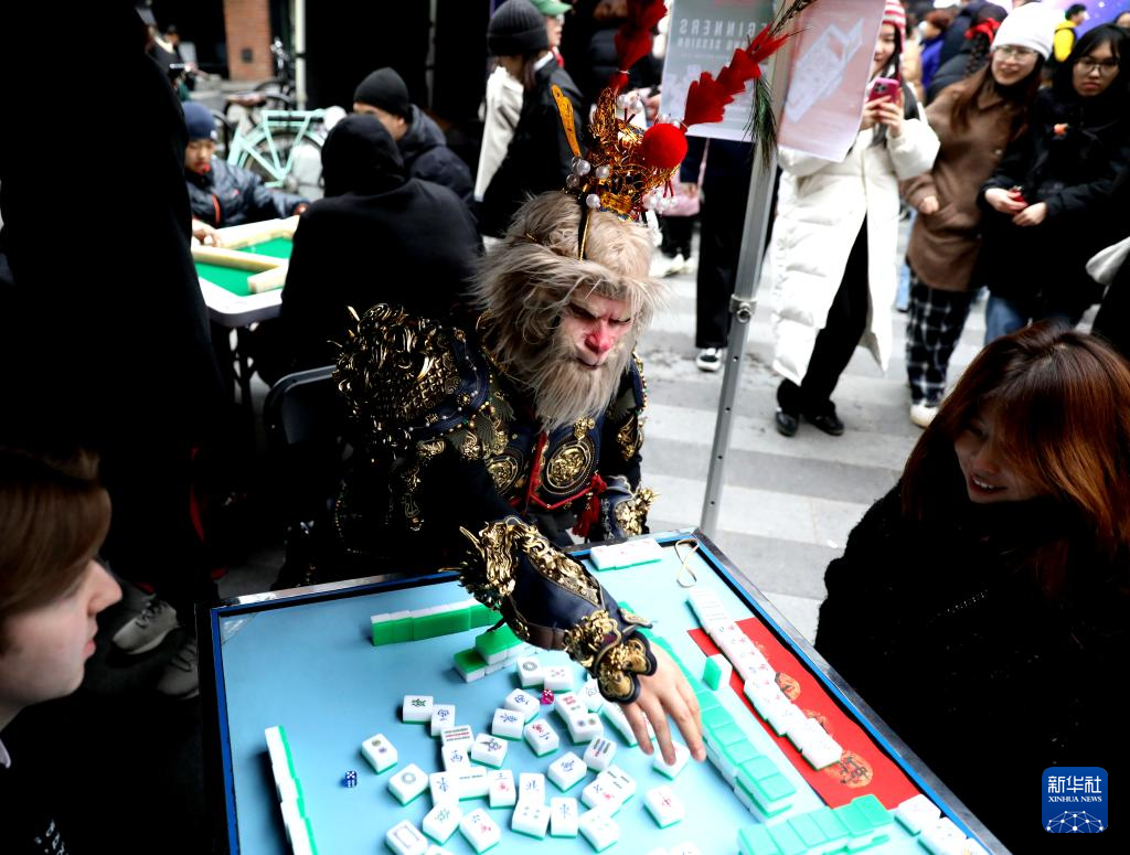 今年,倫敦卡姆登集市首次舉辦了中國春節(jié)慶典活動(dòng)。喜慶的春節(jié)燈飾高高懸掛,在微風(fēng)中輕輕搖曳;空氣中彌漫著中式點(diǎn)心的香氣,令人垂涎欲滴。人群中,偶爾可見漢服衣袂翩然掠過,許多人手中還拿著紅色的燈籠和“福”字。在慶典活動(dòng)上,當(dāng)?shù)厥忻裾淠荨っ谞栁值乱贿吅爸芭觥?,一邊開心地將麻將桌上的“南風(fēng)”牌收到面前。她不僅自己打得得心應(yīng)手,還不時(shí)給身邊的新手講解規(guī)則。