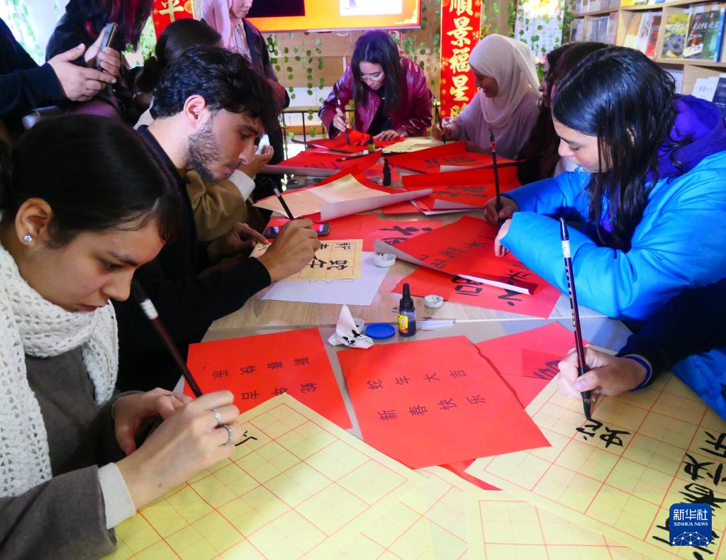 春節(jié)期間,突尼斯東方知識書店舉行了春節(jié)相關(guān)文化活動(dòng),參與者通過觀看視頻短片、有獎(jiǎng)問答、寫福字等活動(dòng)了解中國春節(jié)常識并親身體會(huì)中國年味。突尼斯迦太基大學(xué)高等語言學(xué)院中文專業(yè)學(xué)生興致勃勃地演唱了《月亮代表我的心》等中文歌曲。