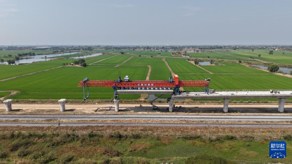 這是1月30日在泰國大城府拍攝的中泰高鐵項(xiàng)目4-3標(biāo)段施工現(xiàn)場(無人機(jī)照片)。新華社記者 孫瑋彤 攝