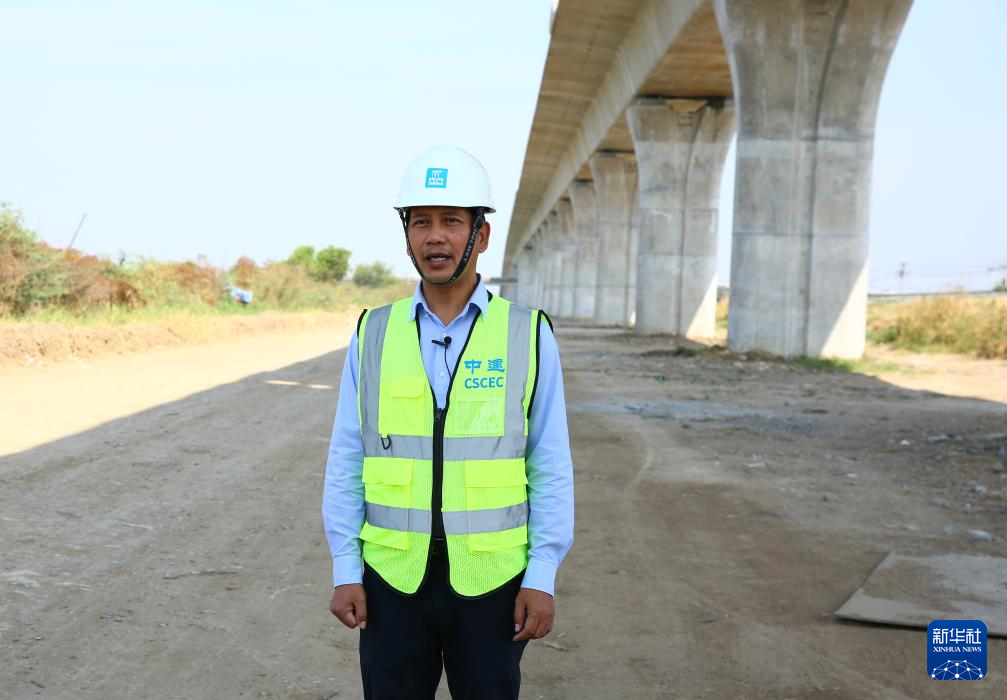 1月30日,在位于泰國中部大城府的中泰高鐵項(xiàng)目4-3標(biāo)段,泰籍員工杰占·賽深接受新華社記者采訪。新華社記者 孫瑋彤 攝