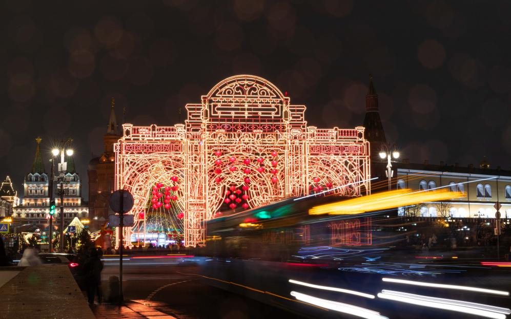 莫斯科春節(jié)慶?;顒娱_幕恰逢除夕。在開幕式舉辦地——莫斯科市中心的馬涅什廣場,節(jié)慶彩色串燈搭配成百上千的紅燈籠裝點一新;臨時搭建的房屋四周懸掛的“?!弊趾椭袊Y(jié),將“年味兒值”拉滿;美食攤位升騰起裊裊炊煙,飄出的香氣令人垂涎欲滴。
