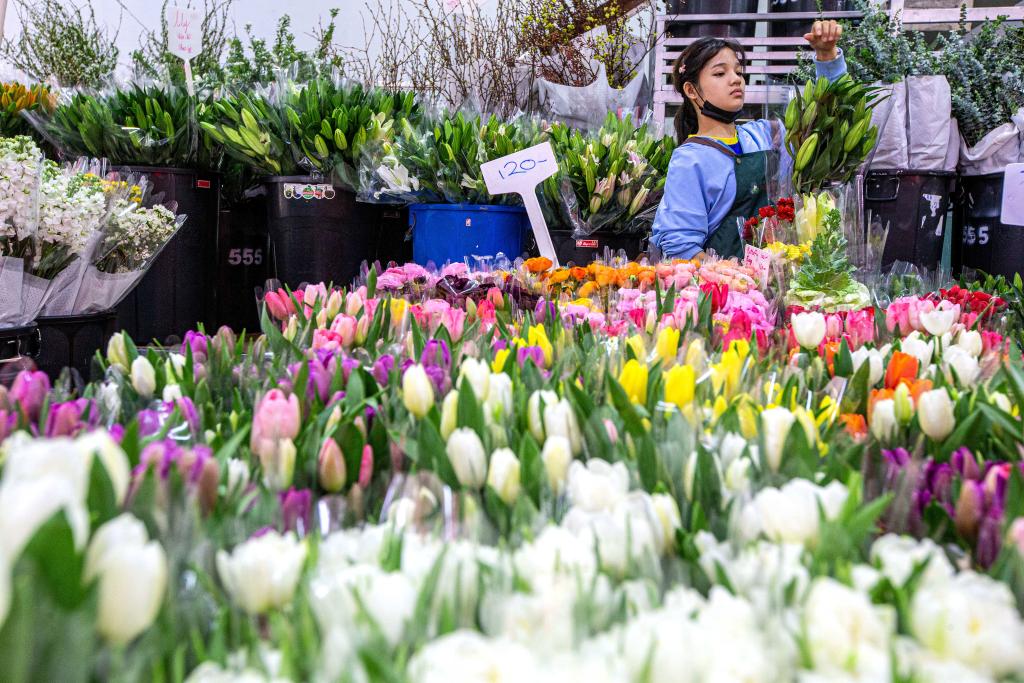 2023年2月21日,工作人員在泰國曼谷帕空鮮花市場(chǎng)包裝來自云南的鮮花。新華社記者王騰攝