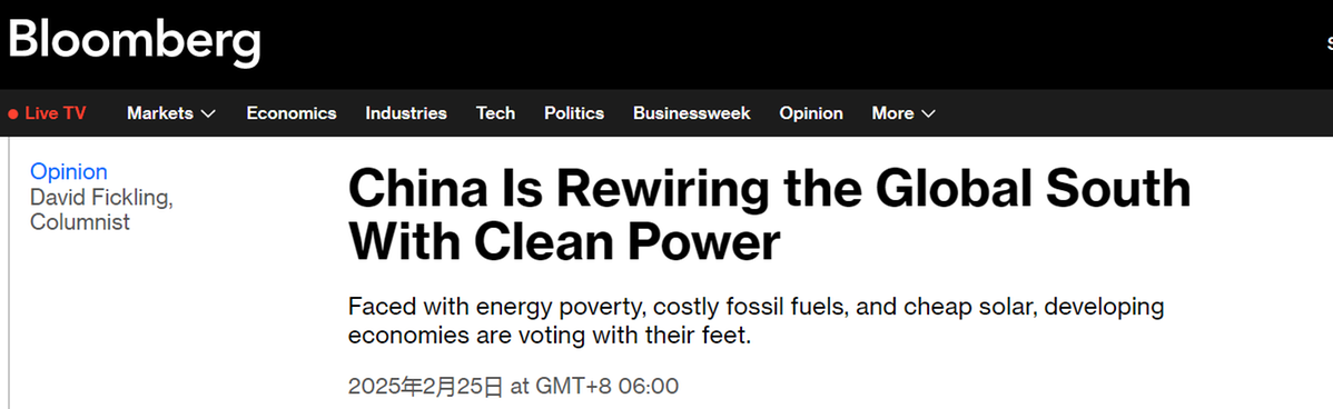 彭博社報(bào)道強(qiáng)調(diào),中國(guó)技術(shù)支持的太陽(yáng)能項(xiàng)目正超過(guò)傳統(tǒng)能源的增長(zhǎng)。