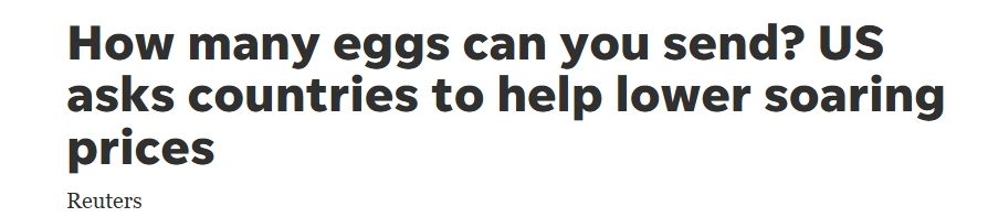 雞蛋讓美國總統(tǒng)特朗普傷腦筋。路透社說,特朗普先前承諾1月20日上任首日就要讓美國蛋價降下來,但執(zhí)政滿一個月時,美國蛋價較去年同期上漲59%。