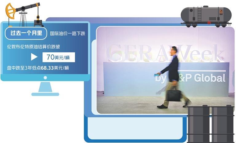 先看最近國際油價的走勢。一方面是油價隨著美國的關稅戰(zhàn)威脅而劇烈波動,并且跌到半年來的最低點。統(tǒng)計數(shù)據(jù)表明,在過去一個月里,國際油價一路下跌,倫敦布倫特原油期貨結算價跌破70美元/桶,盤中更是跌至3年低點68.33美元/桶。自特朗普就職以來,國際油價每桶平均價格已經(jīng)下跌了10美元之多。