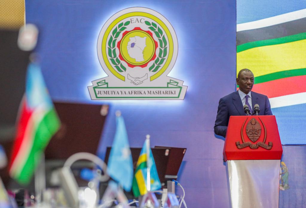 2月8日,東非共同體與南部非洲發(fā)展共同體在坦桑尼亞達累斯薩拉姆聯(lián)合舉行國家元首和政府首腦會議,討論剛果(金)東部局勢,并呼吁立即在剛果(金)?;稹D為肯尼亞總統(tǒng)魯托出席會議。新華社發(fā)(赫爾曼·埃馬紐埃爾攝)