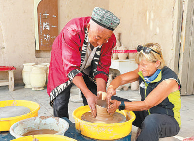 維娜·卡瑪洛塔在新疆體驗制陶工藝?! ≈煸HA攝
