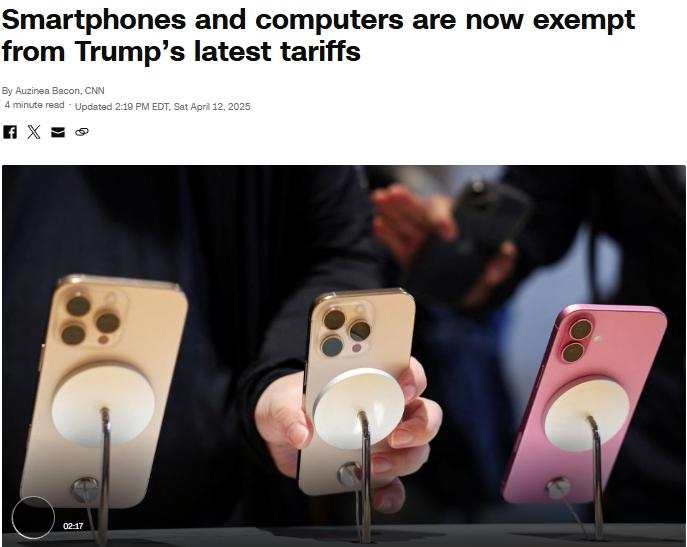 綜合報道,當?shù)貢r間11日晚,美國海關與邊境保護局宣布,聯(lián)邦政府已同意對智能手機、電腦、芯片等電子產品免除所謂“對等關稅”。