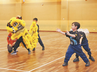 馬來西亞雪蘭莪州培才二校的學(xué)生在練習(xí)舞獅?! ”緢?bào)記者 楊 一攝