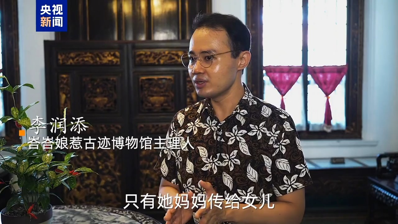 峇峇娘惹古跡博物館主理人 李潤添:家傳的秘方從不外傳。媽媽傳給女兒,媽媽是從婆婆那里學來的,這樣代代相傳,娘惹家族都有好多這些小秘方。我是馬六甲的第五代峇峇,在我這一輩都是把孩子送去讀華小(馬來西亞國民型華文小學)??梢哉f峇峇娘惹年輕一代都是會說中文。