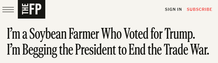 近日,拉格蘭德在The Free Press刊文表示,這場(chǎng)不斷升級(jí)的貿(mào)易戰(zhàn)對(duì)美國(guó)豆農(nóng)來(lái)說是個(gè)沉重打擊,因?yàn)橹袊?guó)是其最大的海外市場(chǎng)。對(duì)于許多美國(guó)大豆種植戶來(lái)說,這仿佛是2018年噩夢(mèng)般場(chǎng)景的重現(xiàn)。那是特朗普總統(tǒng)的第一個(gè)任期,其采取的關(guān)稅措施使美國(guó)農(nóng)業(yè)損失了260億美元,僅大豆產(chǎn)業(yè)就損失了近200億美元。