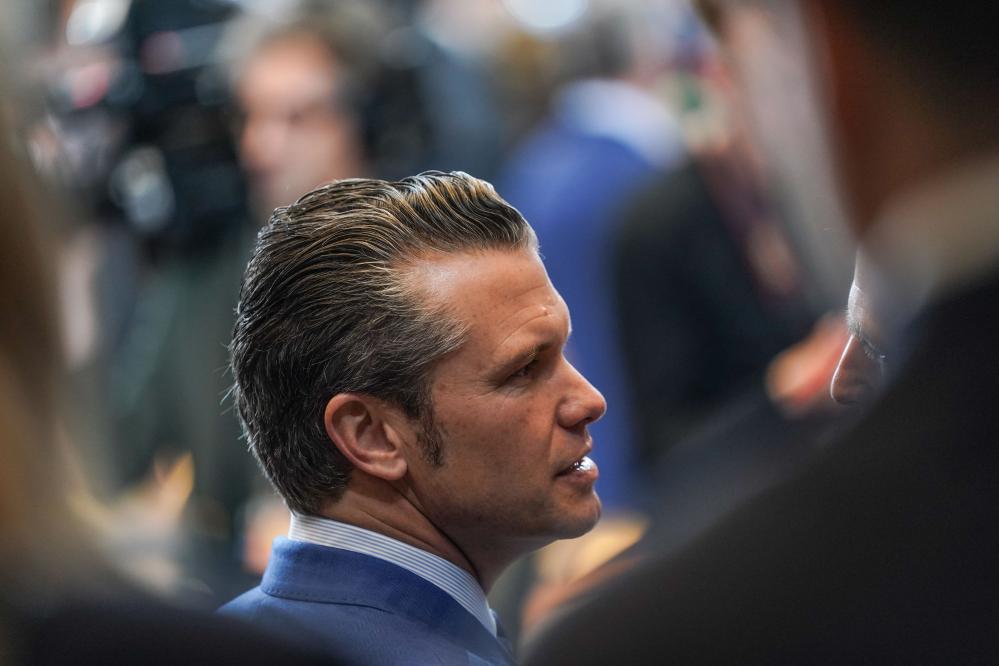2月13日,在比利時(shí)布魯塞爾北約總部,美國國防部長赫格塞思出席“烏克蘭防務(wù)聯(lián)絡(luò)組織”會議。新華社記者彭子洋攝