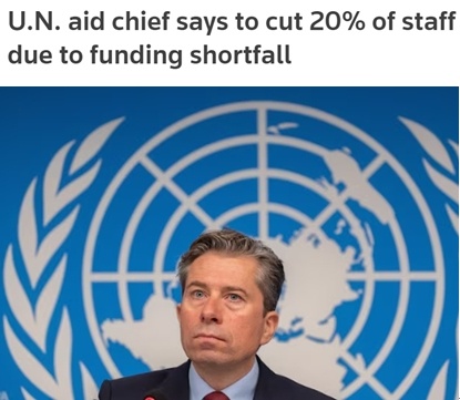 聯(lián)合國人道主義事務協(xié)調廳近日發(fā)表公開信說,由于資金遭遇“殘酷削減”,尤其是美國政府大幅叫停對外援助,該機構將不得不裁撤20%、即500多名工作人員。