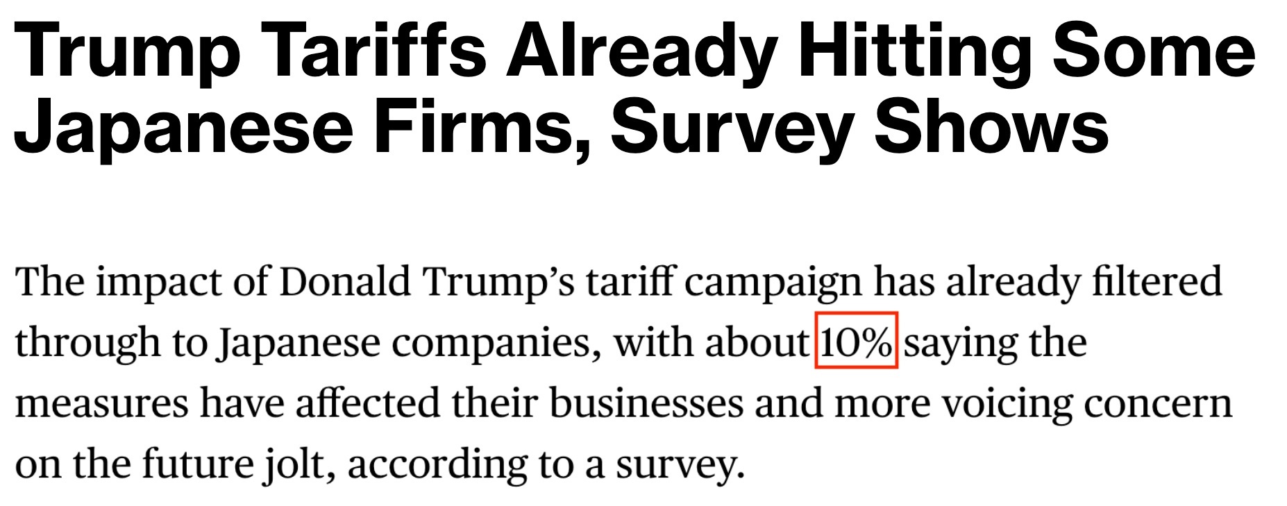 另據(jù)日本《朝日新聞》19日至20日進行的民調(diào),多達85%的日本受訪者擔憂特朗普政府的關稅會對日本經(jīng)濟產(chǎn)生負面影響,其中43%的受訪者表示非常擔憂。