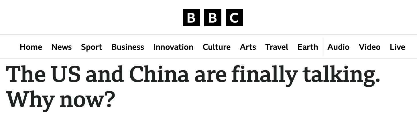 英國廣播公司的報道稱,隨著世界兩大經濟體即將在瑞士開始會談,中美貿易戰(zhàn)可能正在緩和。
