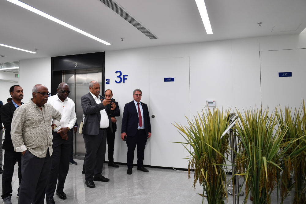 5月14日,非洲駐華使節(jié)代表團在湖南雜交水稻研究中心參觀。新華社記者 陳振海 攝