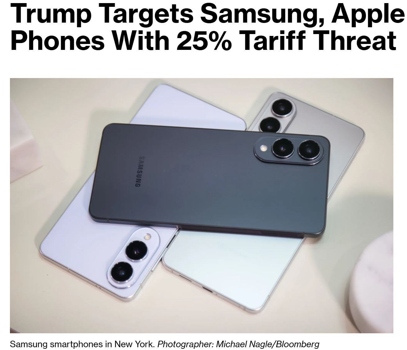 同樣是在23日,特朗普還威脅說,凡是在國外制造并在美國銷售的蘋果手機,都應(yīng)該被征收至少25%的關(guān)稅。韓國三星電子公司和其他生產(chǎn)手機的企業(yè)也將面臨美國的關(guān)稅。相關(guān)政策預(yù)計從6月底開始實施。
