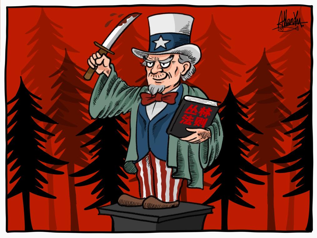 事實(shí)真是如此嗎?二戰(zhàn)后,美國主導(dǎo)建立了所謂“自由主義國際秩序”,并在這一“秩序”下包裝推出許多維護(hù)美國利益的“規(guī)則”。美國通過北約和海外軍事基地構(gòu)建全球軍事網(wǎng)絡(luò),假“維護(hù)和平”“傳播民主”之名實(shí)施武力侵略或政治干涉;靠美元霸權(quán)薅全世界羊毛;不斷將自身利益凌駕于全球秩序之上……美國匹茲堡大學(xué)客座法學(xué)教授丹尼爾·科瓦利克指出,所謂“秩序”“規(guī)則”等旗號,不過是美國用來搶奪和維護(hù)其霸權(quán)利益的幌子,華盛頓實(shí)際上干的還是“殖民掠奪的老本行”。