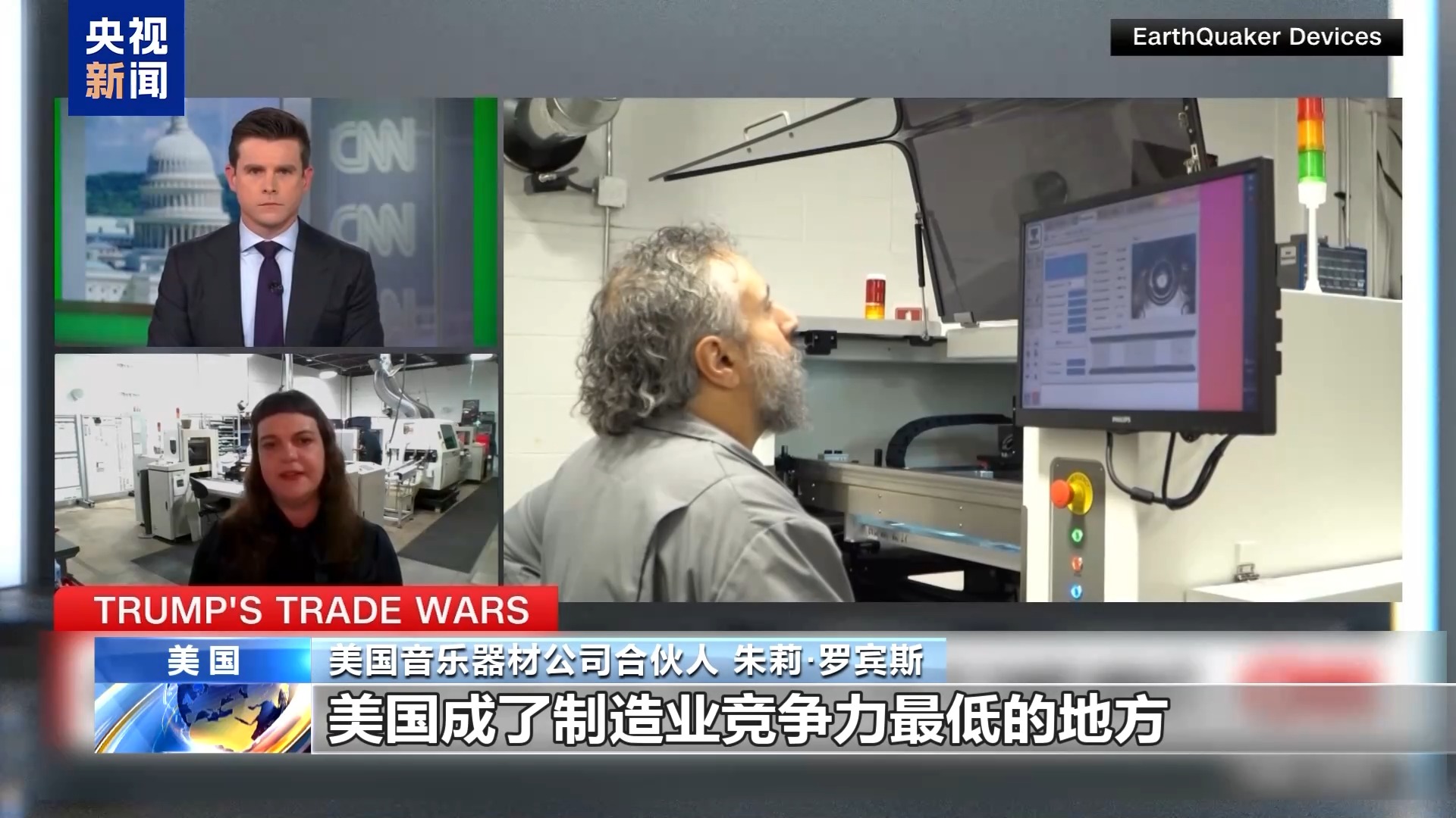 美國(guó)音樂(lè)器材公司合伙人 朱莉·羅賓斯:海外的競(jìng)爭(zhēng)對(duì)手無(wú)需面對(duì)這些困境,無(wú)需支付更多的關(guān)稅。相比之下,美國(guó)成了制造業(yè)競(jìng)爭(zhēng)力最低的地方。