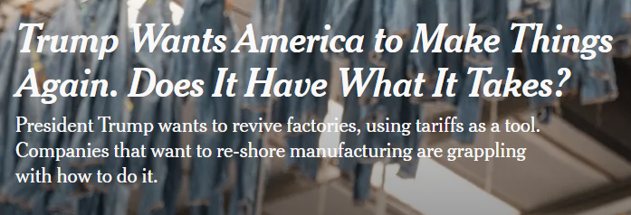 美國政府挑起了一場全球貿(mào)易戰(zhàn),它賭的是對其他國家征稅將會讓就業(yè)和工廠“重回”美國。然而,《紐約時報》近日發(fā)表的一篇文章對這一策略提出了強烈質(zhì)疑,并揭示了美國制造業(yè)回流面臨的巨大挑戰(zhàn)。
