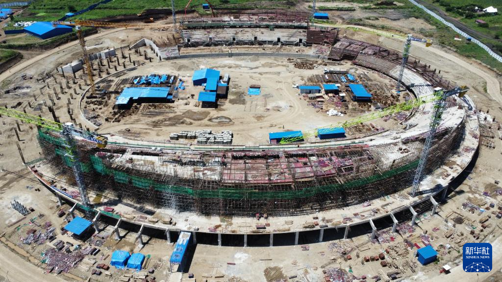 這是坦桑尼亞北部城市阿魯沙的一片繁忙工地:六座高聳的塔吊伸展著鋼鐵巨臂,在高空精準(zhǔn)吊運(yùn)建材;焊接聲、機(jī)械轟鳴聲與指令聲此起彼伏,交織成一首建設(shè)交響曲;上千名工人頭戴安全帽、身著反光背心,正全力拉滿施工“進(jìn)度條”……一座現(xiàn)代化體育場已初具雛形。