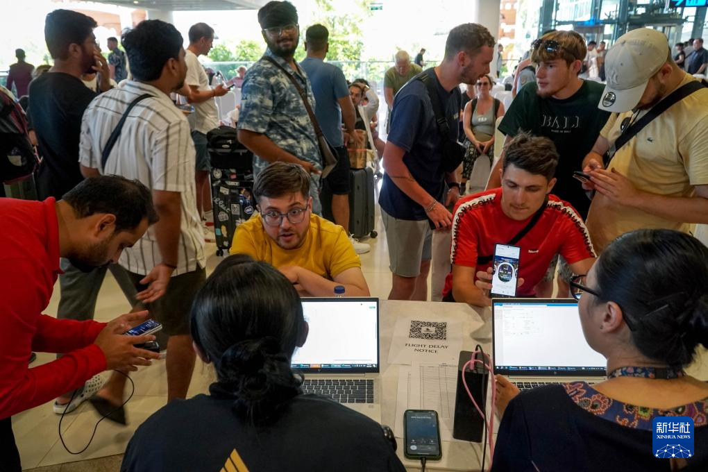 6月18日,在印度尼西亞巴厘島伍拉萊國際機(jī)場,由于勒沃托比-拉基拉基火山噴發(fā)導(dǎo)致航班延誤的乘客們詢問信息。新華社發(fā)(比辛拉西攝)