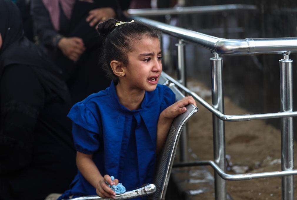 7月1日,在加沙城,一名小女孩參加巴勒斯坦人悼念以軍襲擊中的遇難者的儀式。新華社發(fā)(馬哈茂德·扎基攝)