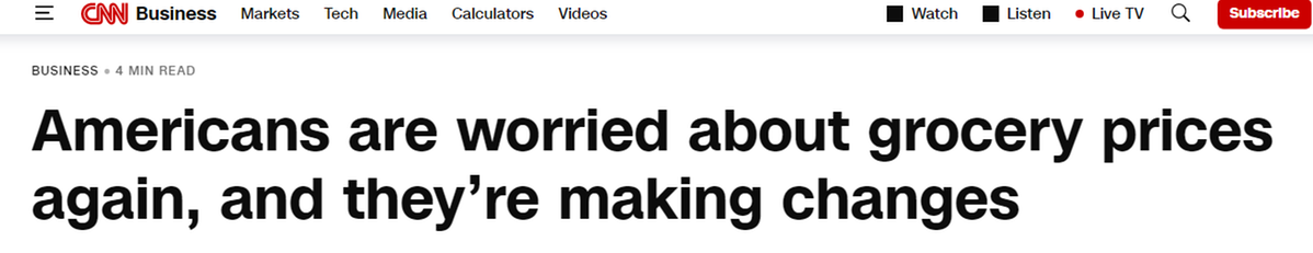 報(bào)道還指出,民調(diào)清晰地表明美國人對(duì)高昂的食品成本和經(jīng)濟(jì)狀況倍感焦慮,他們的購物方式也因此出現(xiàn)巨大改變。這與眾多企業(yè)提到的情況一致,他們表示消費(fèi)者正在調(diào)整購物模式,比如從購買大包裝改成買小包裝,只買生活必需品,更多地在家吃飯。
