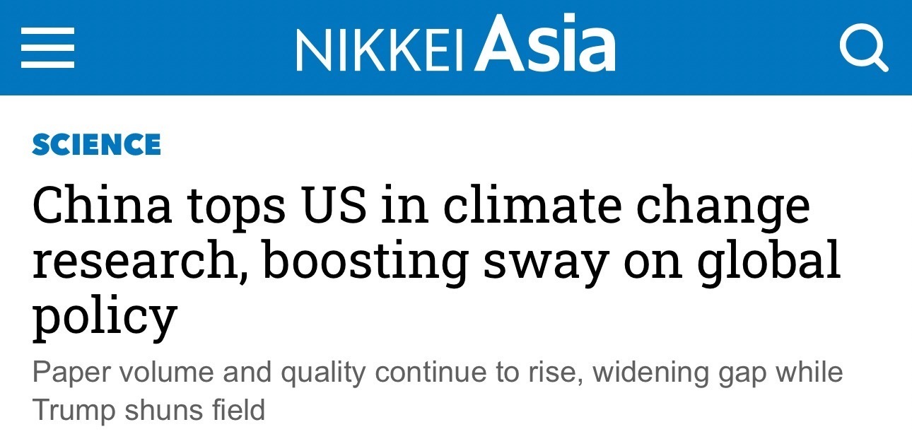 文章援引東京大學教授兼氣候變化專家江森清太的觀點指出,中國的研究能力在各個領域都呈現(xiàn)出強勁的上升勢頭,其在氣候變化研究領域的國際影響力也將持續(xù)擴大。