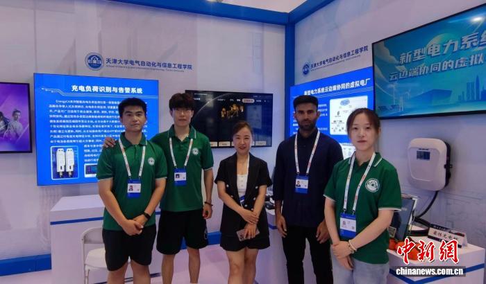 2024年6月,世界智能產(chǎn)業(yè)博覽會期間,穆罕默德·沙拉爾與導(dǎo)師和實驗室同學(xué)一起參與相關(guān)科研成果展陳工作。(天津大學(xué) 供圖)