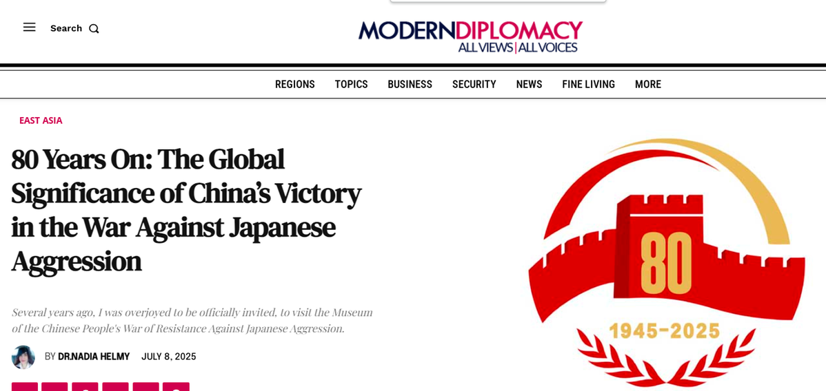 文章說(shuō),2025年是世界反法西斯戰(zhàn)爭(zhēng)勝利80周年,國(guó)際社會(huì)應(yīng)更加深刻地銘記中國(guó)抵抗日本軍國(guó)主義侵略所付出的巨大犧牲。中國(guó)人民抗日戰(zhàn)爭(zhēng)不僅是民族保衛(wèi)戰(zhàn),更是全球反法西斯戰(zhàn)爭(zhēng)的基石。80年后的今天,世界應(yīng)重新審視中國(guó)在二戰(zhàn)中的貢獻(xiàn),避免歷史悲劇重演。