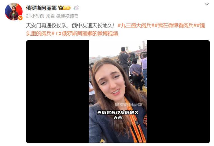 十年后,阿麗娜終于圓夢(mèng),來(lái)到了北京。九三閱兵當(dāng)天,阿麗娜在社交媒體上接連發(fā)布多條帖文,并用中文表達(dá)了自己的開(kāi)心,“中國(guó)軍人太帥了”“俄中友誼天長(zhǎng)地久”!