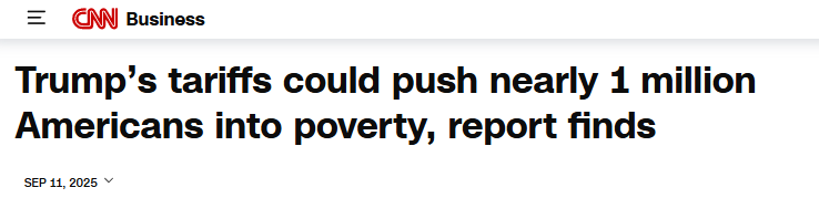 美國有線電視新聞網(wǎng)(CNN)11日報道指出,特朗普政府的關(guān)稅政策在推高聯(lián)邦收入的同時,恐導(dǎo)致顯著的社會成本。耶魯大學(xué)預(yù)算實驗室最新分析顯示,這一系列政策或使近百萬美國人陷入貧困。