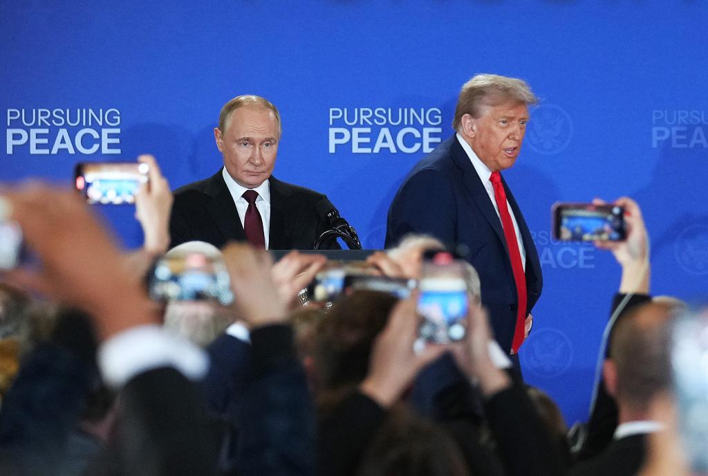 8月15日,美國總統(tǒng)特朗普(后右)與俄羅斯總統(tǒng)普京(后左)在美國阿拉斯加州安克雷奇市埃爾門多夫-理查森聯(lián)合軍事基地舉行會晤后共同出席聯(lián)合記者會。新華社記者吳曉凌攝
