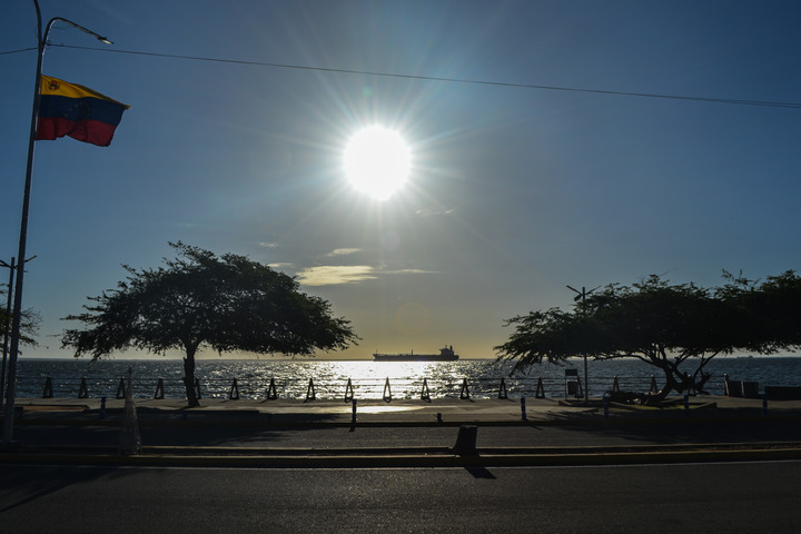 2025年12月23日,一艘油輪停泊在委內(nèi)瑞拉蘇利亞州馬拉開波湖上。當(dāng)?shù)啬繐粽呷涨跋蛐氯A社透露,23日在該國(guó)西部馬拉開波湖這一核心產(chǎn)油區(qū),仍可見油輪正在等待出?;虼┻^拉斐爾·烏達(dá)內(nèi)塔將軍大橋進(jìn)入巴霍格蘭德港口。新華社發(fā)