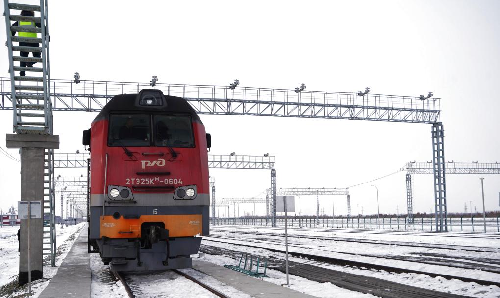2025年12月6日,一輛即將開往中國(guó)的俄羅斯貨運(yùn)列車??吭诙砹_斯下列寧斯闊耶鐵路口岸。新華社記者劉愷攝