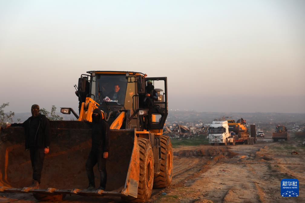 1月7日,在加沙城東南部的宰通社區(qū),巴勒斯坦伊斯蘭抵抗運(yùn)動(哈馬斯)成員參與對加沙地帶最后一具以色列被扣押人員遺體的搜尋工作。新華社發(fā)(里澤克·阿卜杜勒賈瓦德攝)